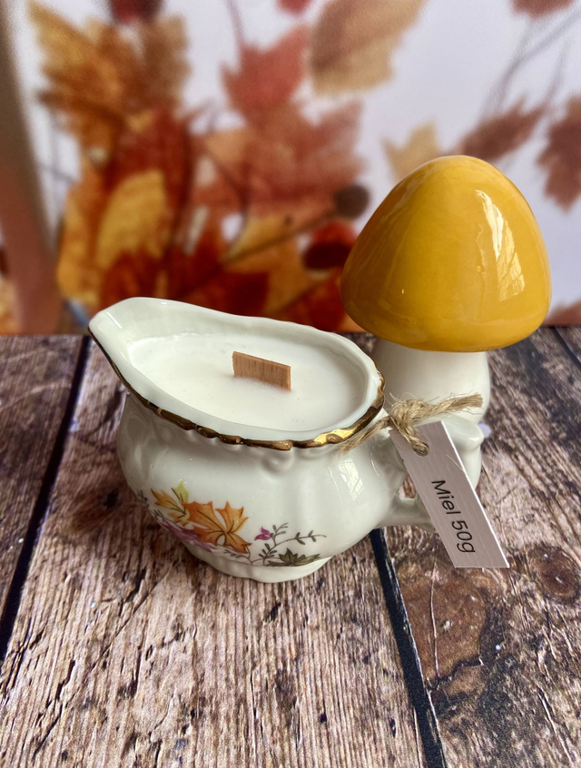 Bougie senteur Miel, parfum d’origine française sans phtalates et sans CMR (Cancérogène, Mutagène, Reprotoxique).